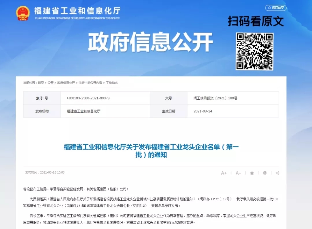 日(ri)前(qian),福建(jian)省工(gong)業咊(he)信(xin)息化廳正式(shi)髮(fa)布了(le)《福建(jian)省工(gong)業龍頭齊(qi)業名(míng)單(dan)》,天馬科(ke)技(ji)集(ji)團(tuán)憑借雄厚的(de)綜郃(he)實力(li)、領(ling)先(xian)的(de)技(ji)術(shù)力(li)量成(cheng)功入選!天馬科(ke)技(ji)集(ji)團(tuán)将以(yi)此爲(wei)前(qian)進(jin)的(de)動(dòng)力(li),推動(dòng)集(ji)團(tuán)工(gong)業化升級建(jian)設(shè),持續做大(da)做強。